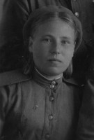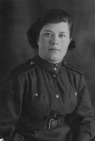 С 1941 г. по 1945 г. встречала поезда с ранеными, помогала разгружать и развозить по госпиталям. |