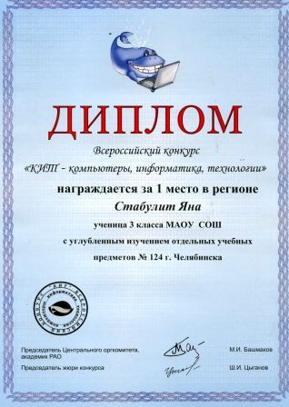 - Стабулит Яна, 3 класс (диплом и ценный подарок)