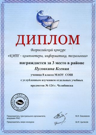 В конкурсе «Кит — компьютеры, информатика, технологии» 24 ноября 2011 года приняли участие 110 учащихся нашей школы.