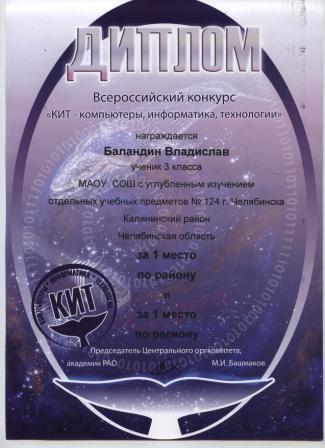 - Баландин Владислав, 3 класс (диплом и ценный подарок)