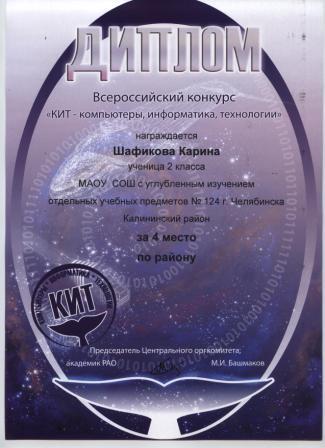 - Шафикова Карина, 2 класс (диплом)