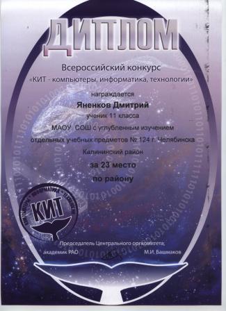 - Яненков Дмитрий, 11 класс (диплом)