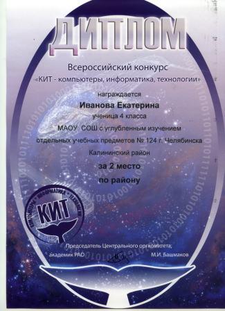 - Иванова Екатерина, 4 класс (диплом)