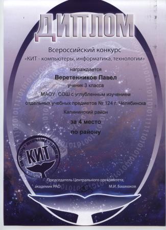 - Веретенников Павел, 3 класс (диплом)