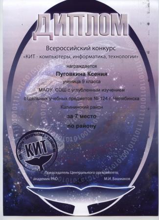- Пуговкина Ксения, 9 класс (диплом)
