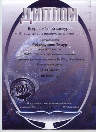 - Губайдуллин Тимур, 10 класс (диплом)