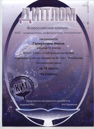 - Галиуллина Нелли, 10 класс (диплом)