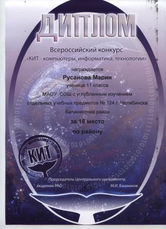 - Русанова Мария, 11 класс (диплом)