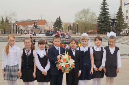 К Вечному огню для возложения цветов была направлена группа лучших учащихся начальных классов. Возглавила делегацию учитель высшей категории Щупко Нина Владимировна.