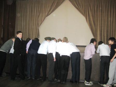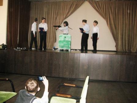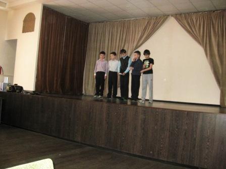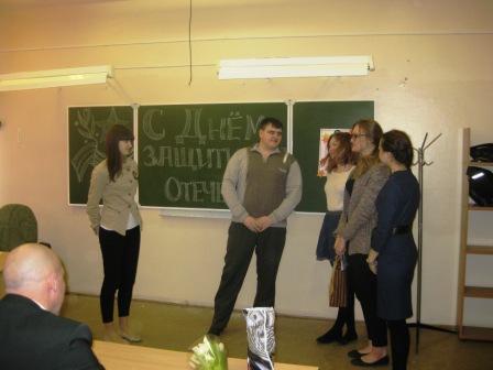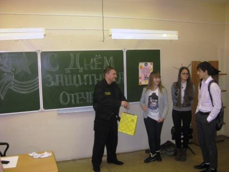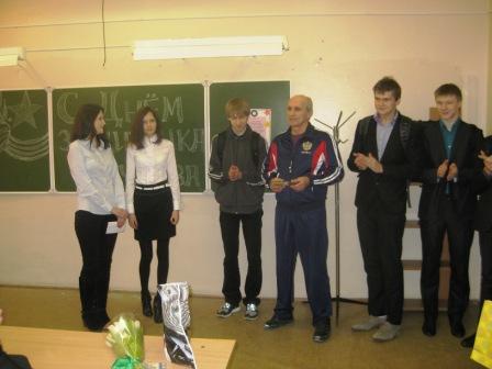 Старшеклассники поздравили мужчин – сотрудников школы, и вручили им памятные подарки |
