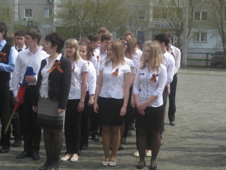 По традиции школы к Вечному огню для возложения цветов была отправлена делегация в составе отличников учебы, победителей и призеров районных, городских и всероссийских мероприятий: Воробьевой Полины (4-а), Ковалевой Елизаветы (7-а), Келиной Ксении (7-а), Абдрашитова Артема (11-б). Возглавила делегацию учитель начальных классов Щупко Н.В.