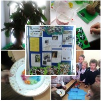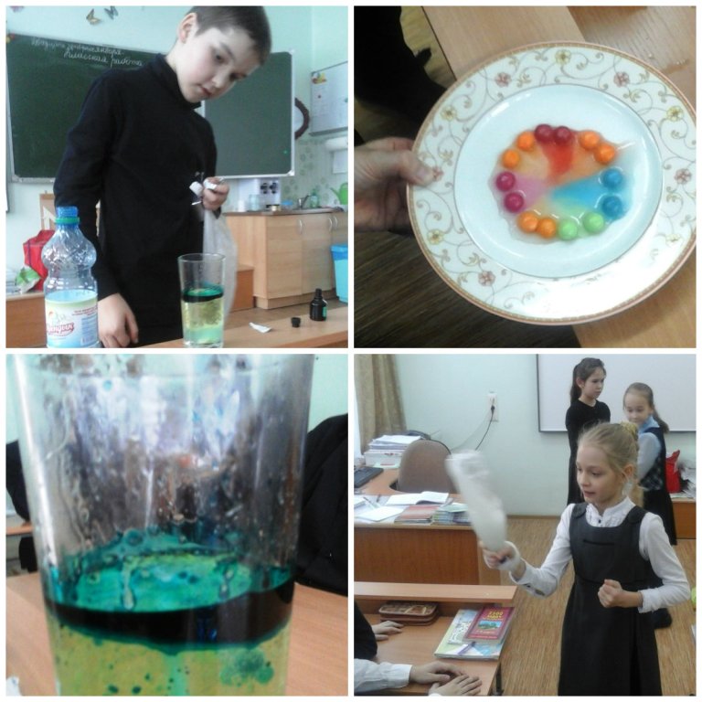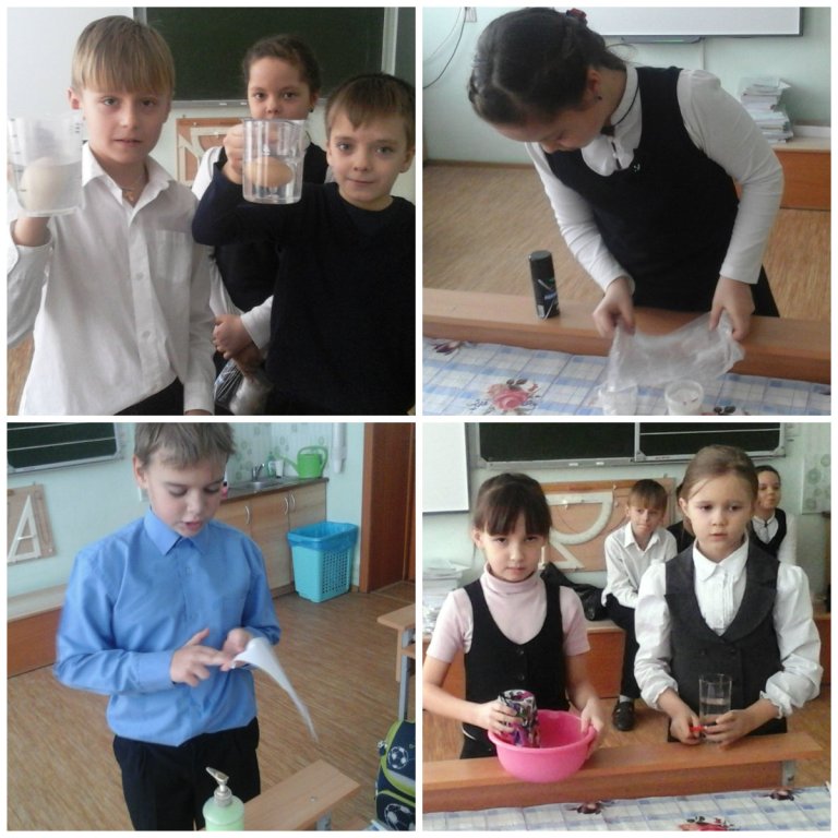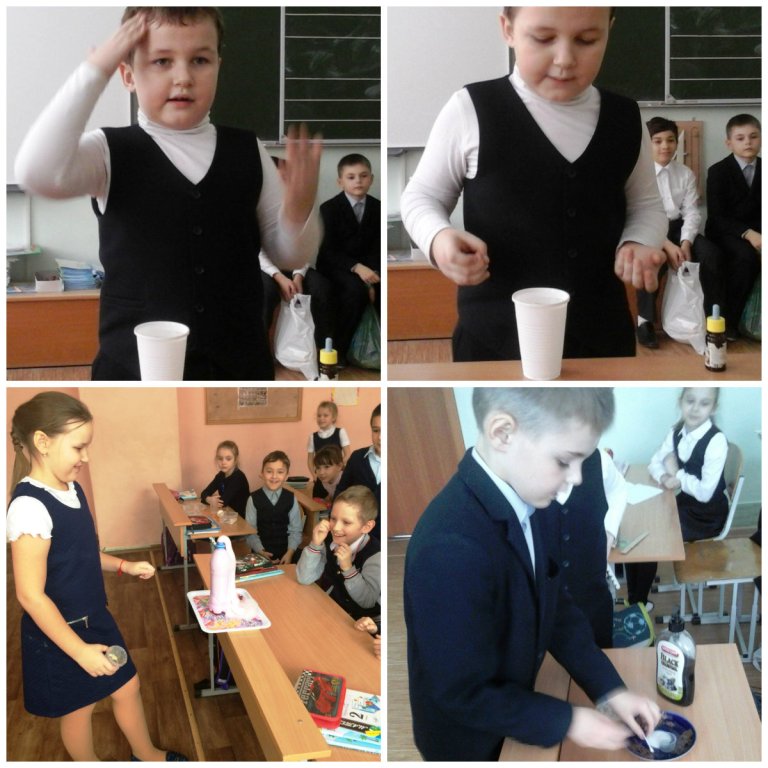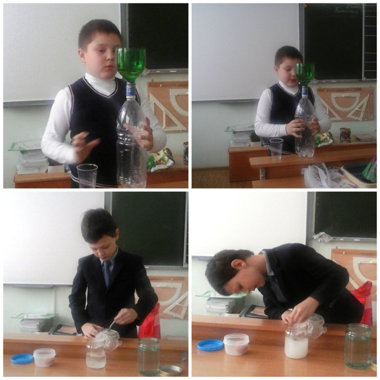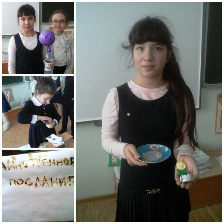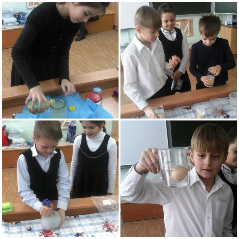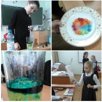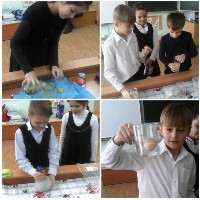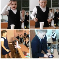 Стартом недели был проект «Природа в занимательных опытах и экспериментах». В занимательных опытах и экспериментах ученики выявляли свойства воды, воздуха, показывали действие вулкана и т.д. Пытались обнаружить воздух в окружающем пространстве при помощи полиэтиленового пакета, соломинки и банки с водой.