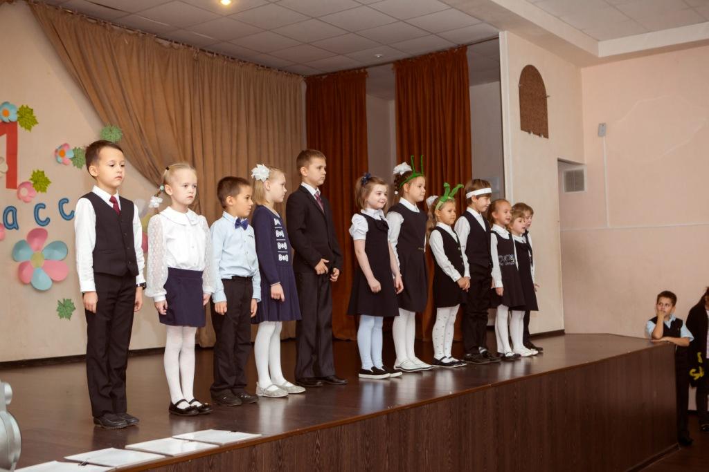 В зале собрались нарядные учащиеся 1-ых классов, учителя и родители. На празднике первоклассники читали стихотворения, пели песни, играли вместе со сказочными героями: Незнайкой и Кнопочкой. Выполняли задания коварной Двойки.