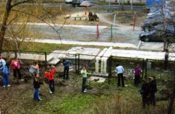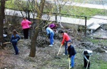 Ученики и учителя школы принимают активное участие в городском субботнике - очищают от мусора территорию школы и близлежащую территорию